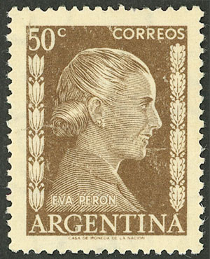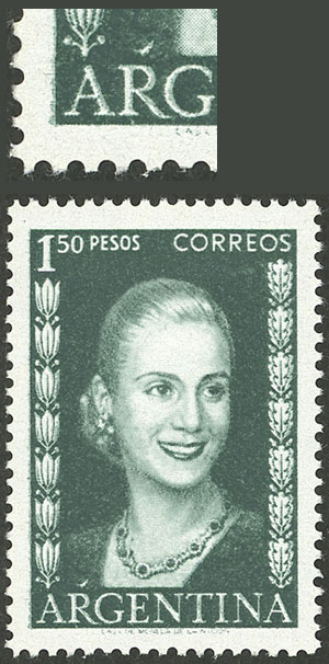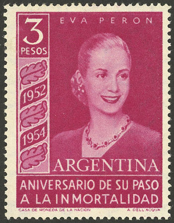 GJ.1030A, $3 Eva Perón on imported paper, with tiny defect only visible on back, superb appearance! (Image)