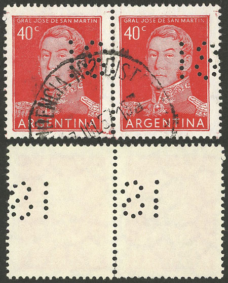 pair, both with "IS" perfin (Instituto Autártico Provincial del Seguro de Entre Ríos), rare! (Image)
