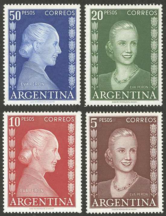 GJ.1019/1022, the 4 high values of the Eva Perón set, excellent quality (Image)