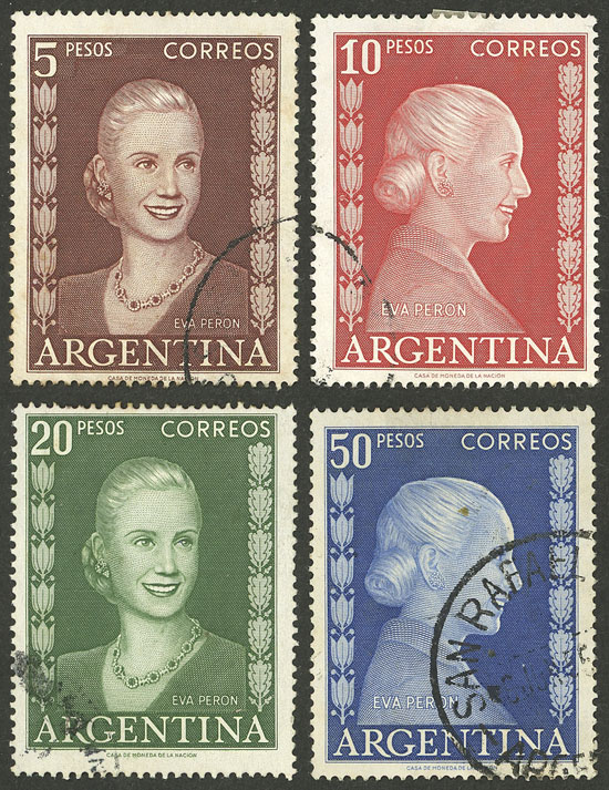 GJ.1019/1022, Eva Perón, the 4 high values of the set used, they are scarcer than mint (Image)