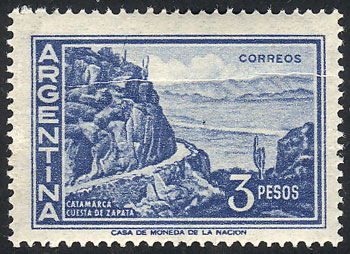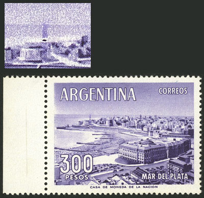 $300 Mar del Plata, sheet margin, with lighthouse in Cabo Corrientes, it is rare to find this variety on an example printed on CHALKY paper, VF quality (Image)