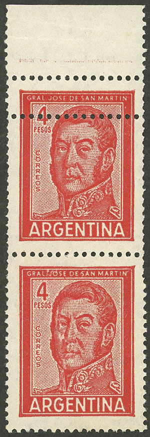 marginal pair, the top stamp with VARIETY: double horiz perforation (Image)