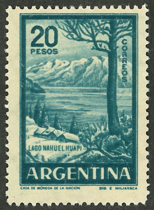 GJ.1145SG, $20 Nahuel Huapi, excellent example PRINTED ON GUM, superb (Image)