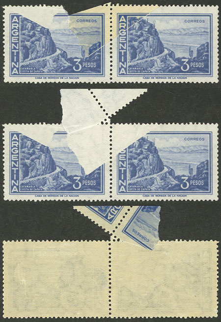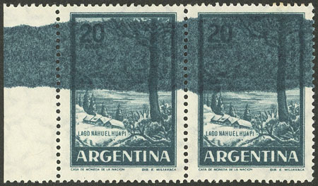 pair with variety: dramatic printing error (area partially printed on gum and foldover), excellent (Image)