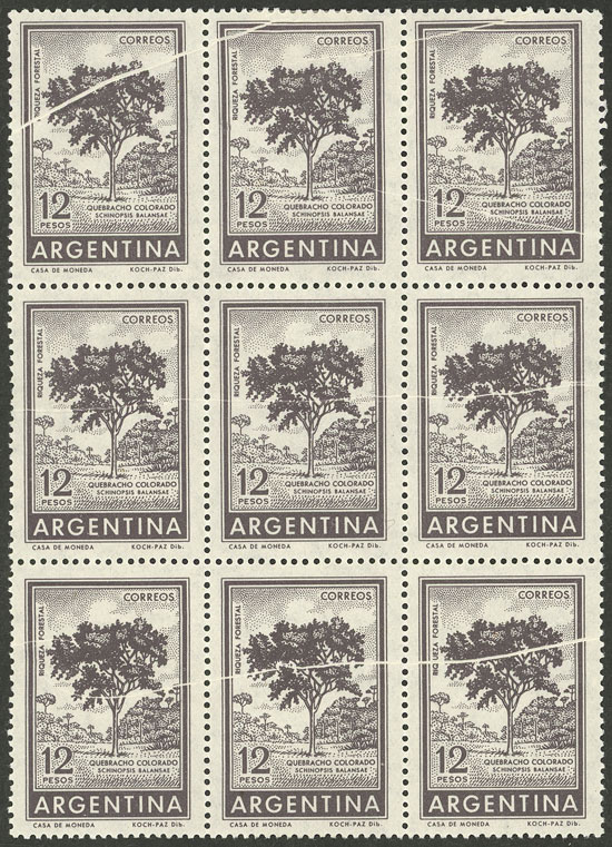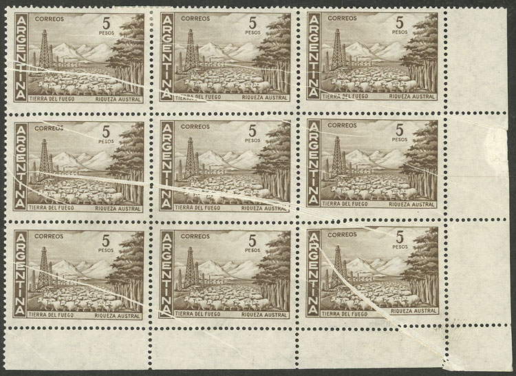 block of 9 with variety: Multiple paper folds, the catalog value of a normal block is US$90, on stamp with hinge the rest MNH, VF (Image)