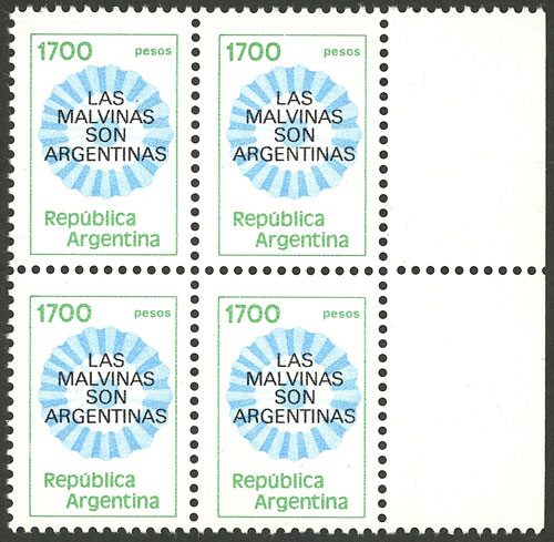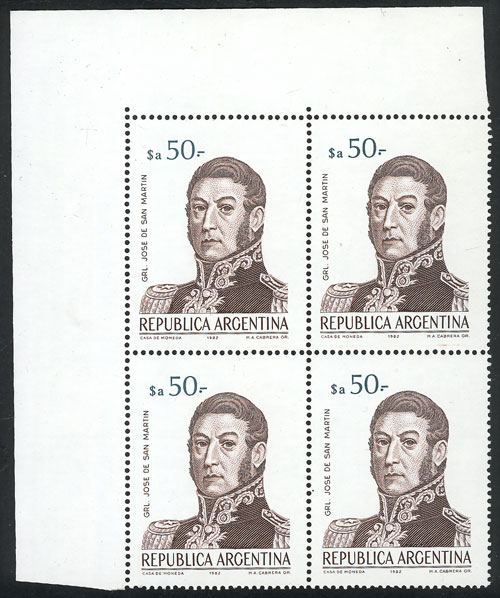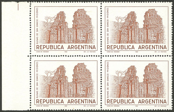 GJ.2056a, Ruins of San Ignacio, high value of the set in marginal block of 4, with variety: FACE VALUE OMITTED, it is very rare in block of 4!! (Image)