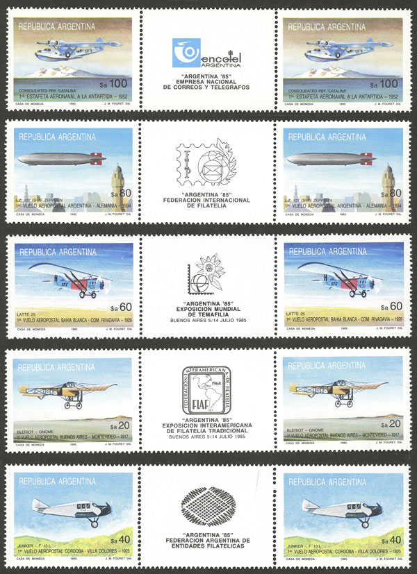 GJ.2197/2201EN, Airplanes + Zeppelin, 2 sets with gutters (Image)
