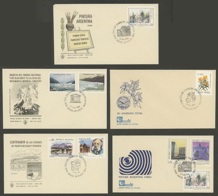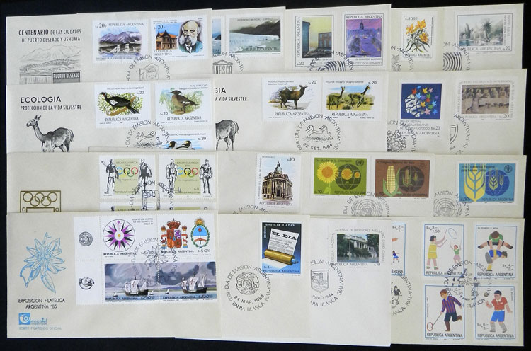GJ.2153 + other values, 35 commemorative stamps of year 1984, all different, on FDC covers (Image) (Image-02)