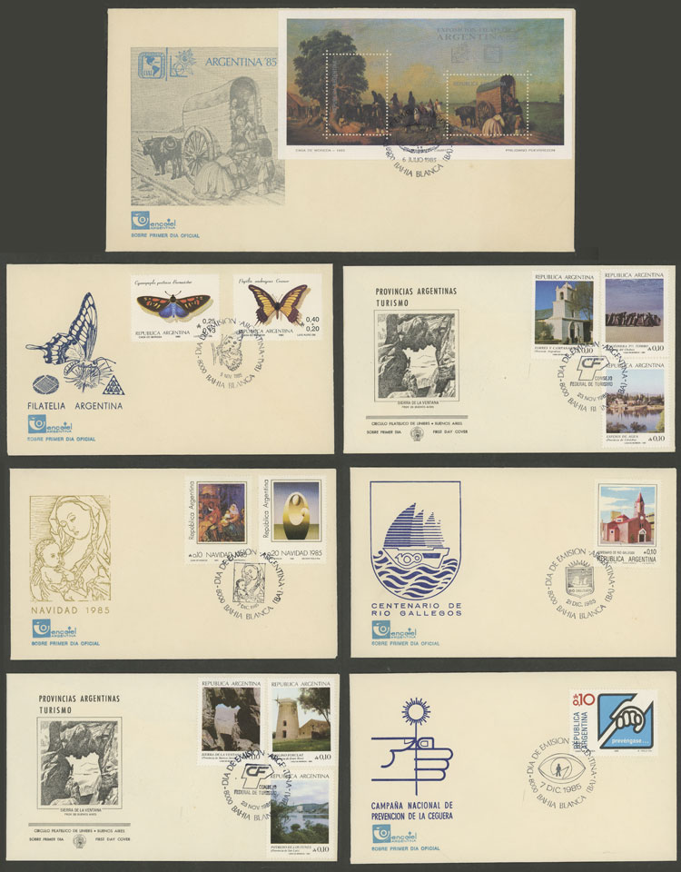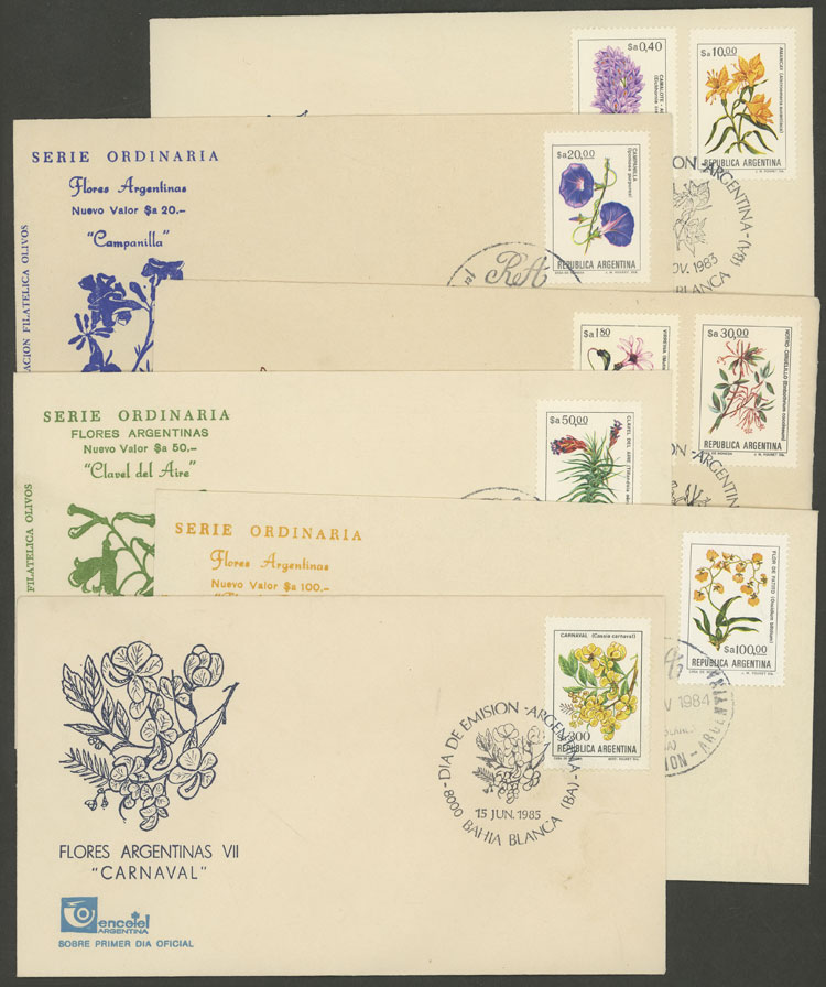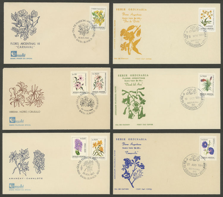 GJ.2103 + 2106 + 2110/2115, Flowers (in pesos Argentinos), 8 different values of the set on FDC covers (Image) (Image-02)