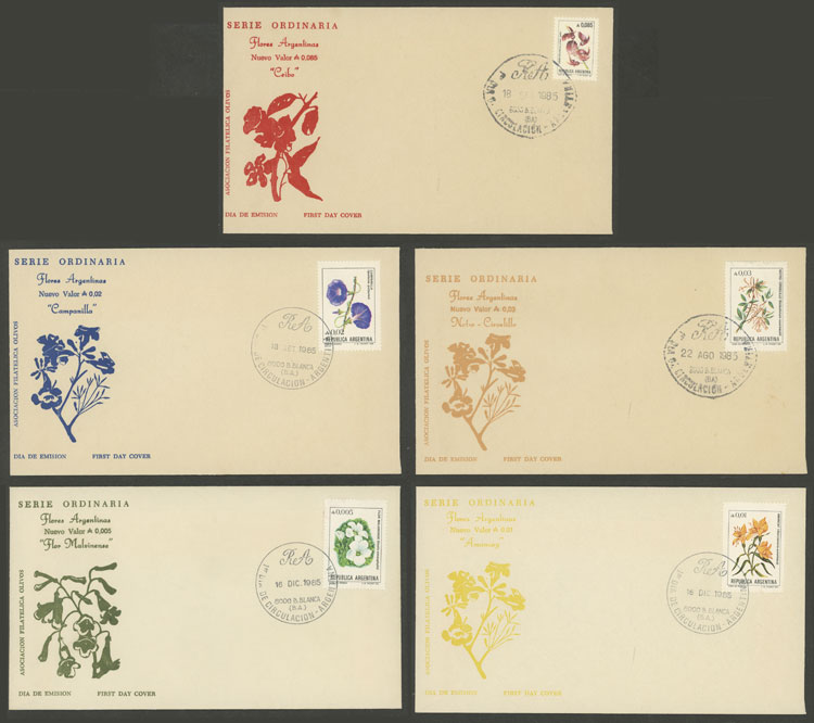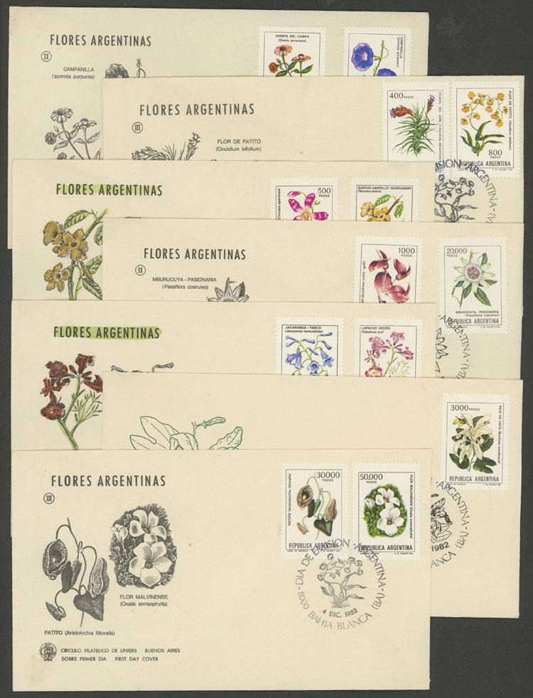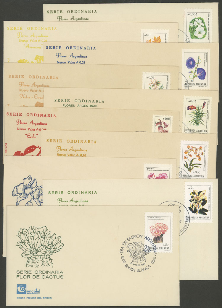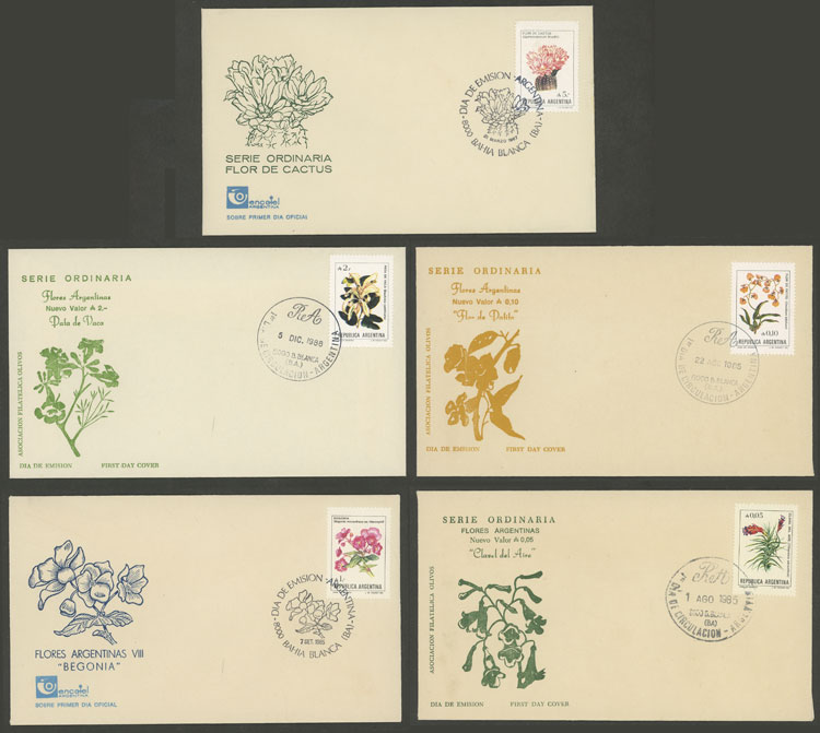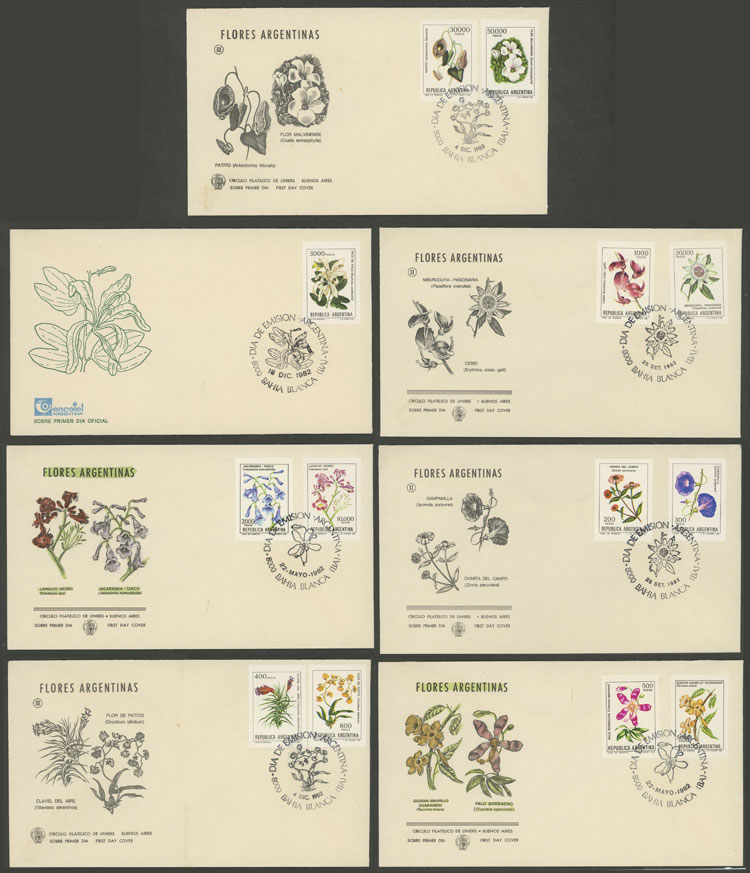 GJ.2208/2214 + 2219/2221, Flowers (in Australes), 10 different values of the seton FDC covers (Image) (Image-02)