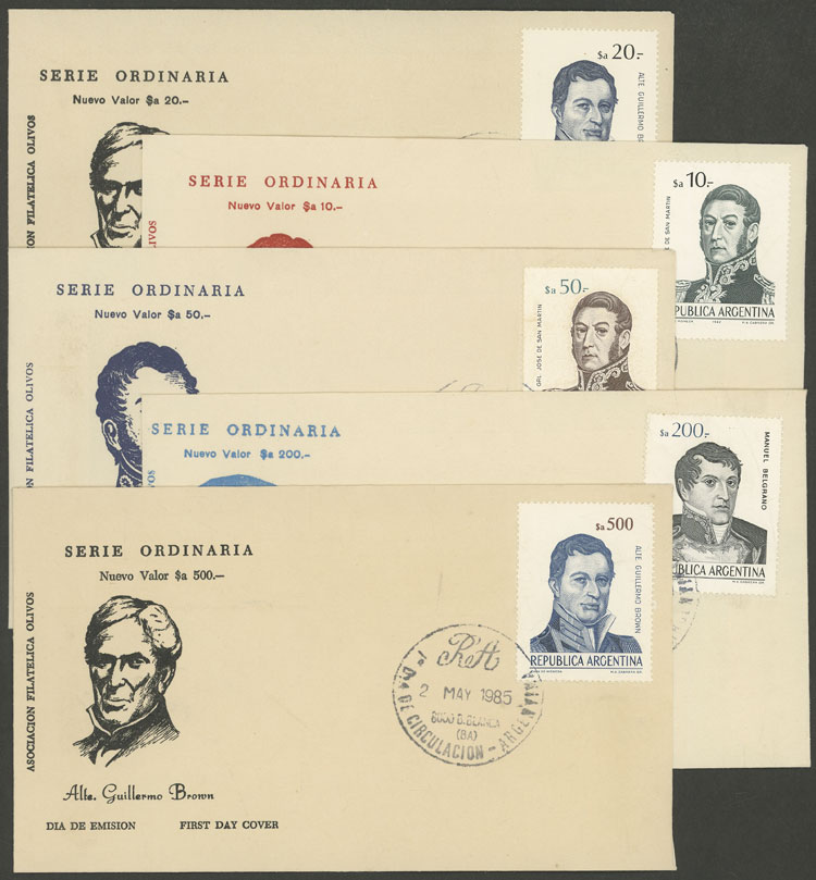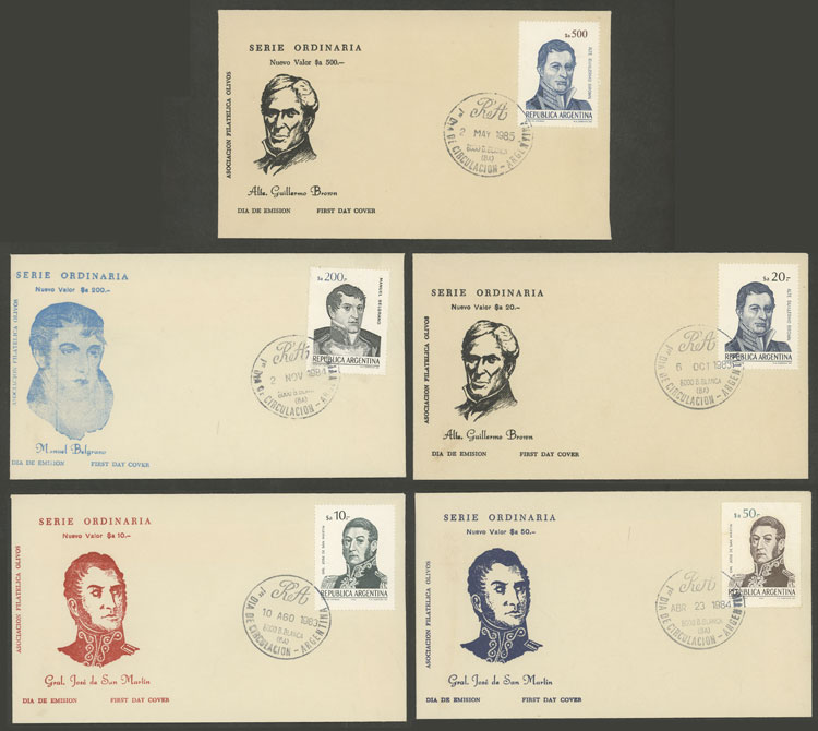 GJ.2146/2150, Próceres, cmpl. set of 5 values on FDC covers, VF (Image) (Image-02)