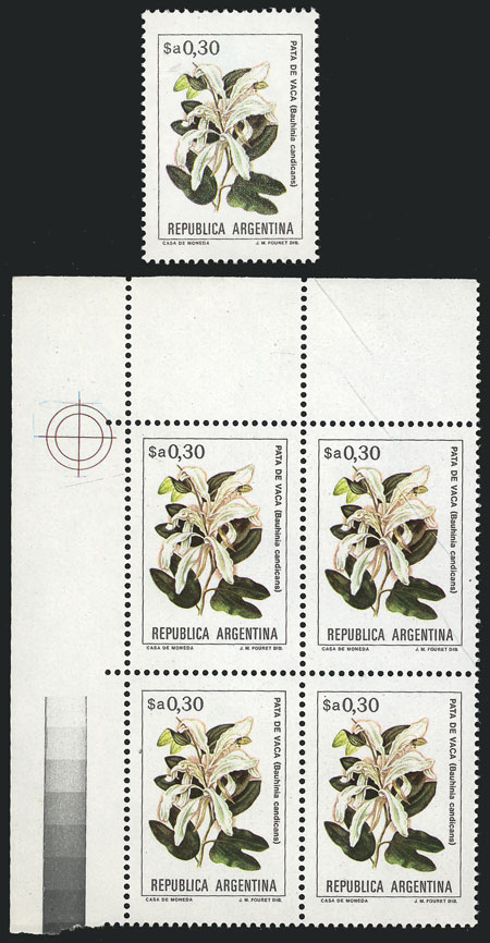 $a0.30 Flowers, single and block of 4 from very different printings, interesting! (Image)