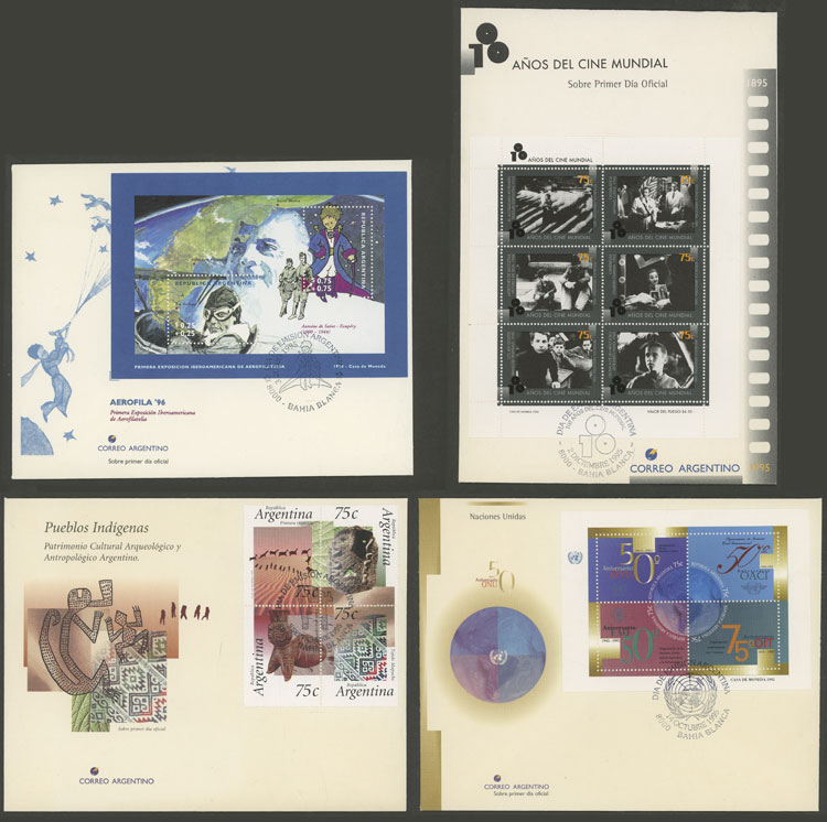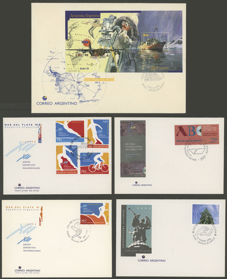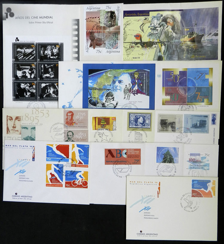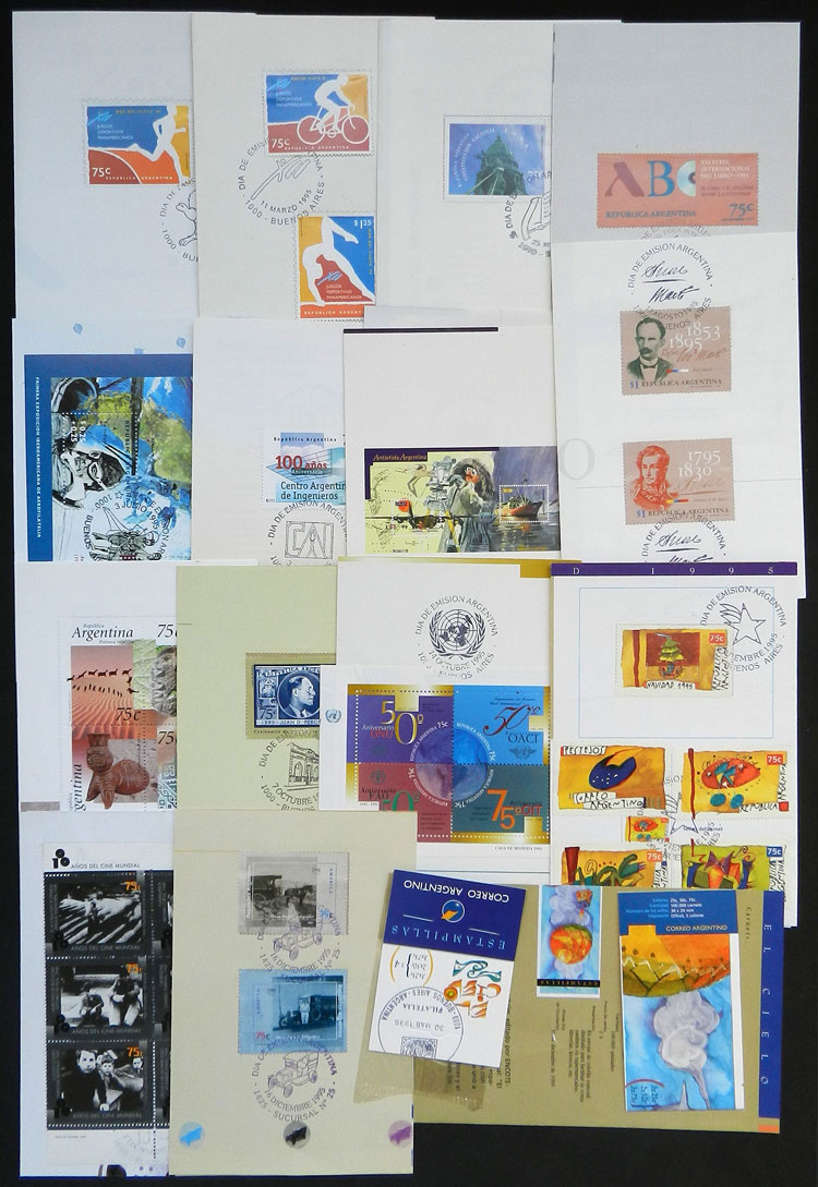 + other values, 1995 complete yearset of commemorative stamps, on leaflets with first day postmark, including booklets and s.sheets, VF quality (Image)