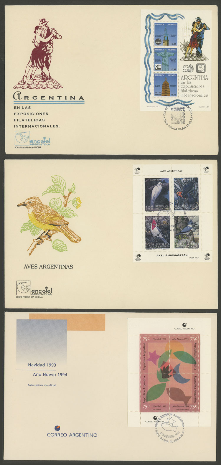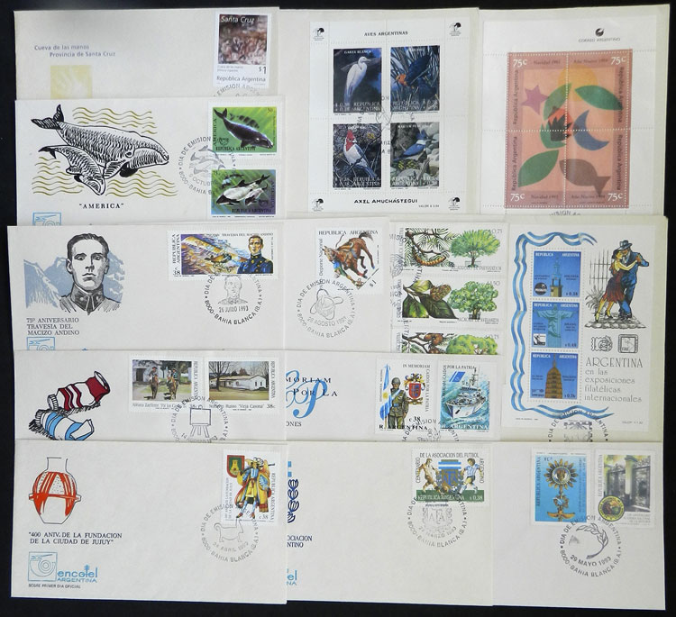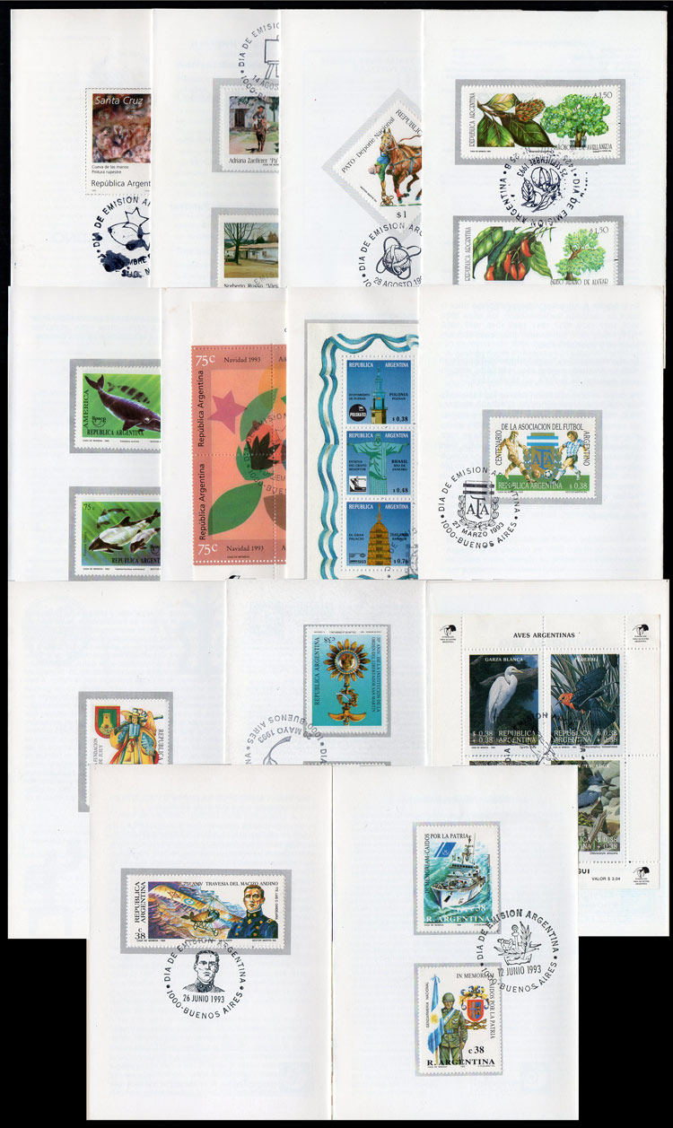 + other values, 1993 complete yearset of commemorative stamps, on leaflets with first day postmark, including s.sheets, VF quality (Image)