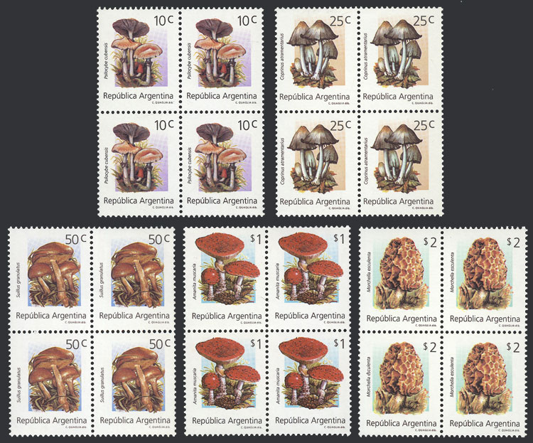 GJ.2669/73, Mushrooms, small size, cmpl. set in superb blocks of 4 (Image)