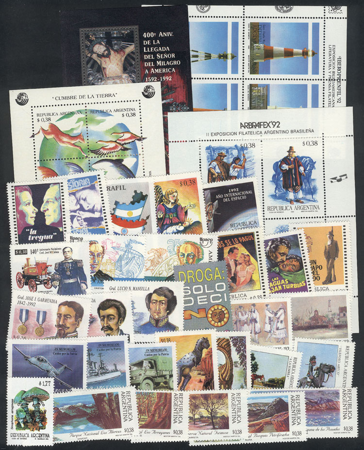 + other values, 1992 cmpl. yearset of commemorative stamps, including s.sheets HB 100/3, VF quality (Image)