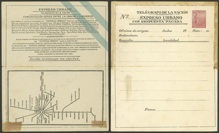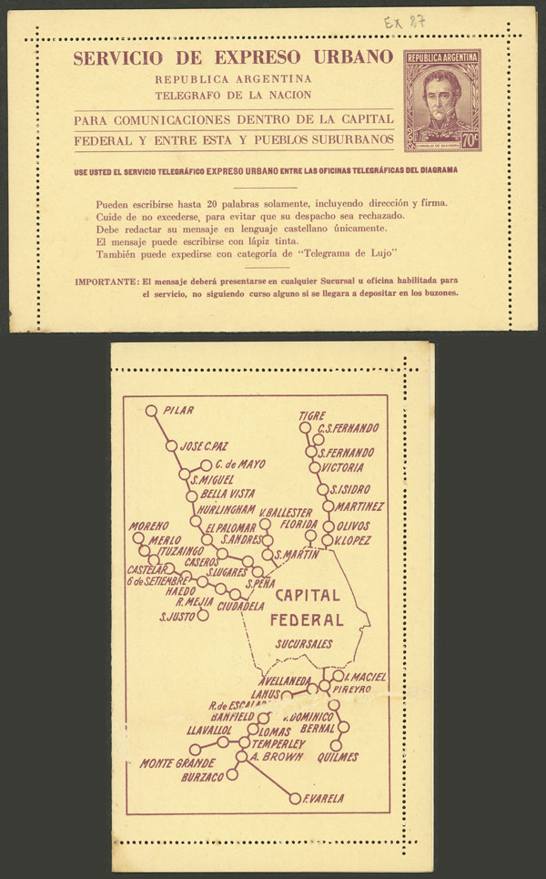 70c. Expreso Urbano (Saavedra), with inscription Pueden escribirse hasta 20 palabras solamente...", with extended perforations, very scarce! (Image)