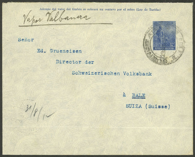 12c. stationery envelope sent from Buenos Aires to Switzerland by steamship (Image)