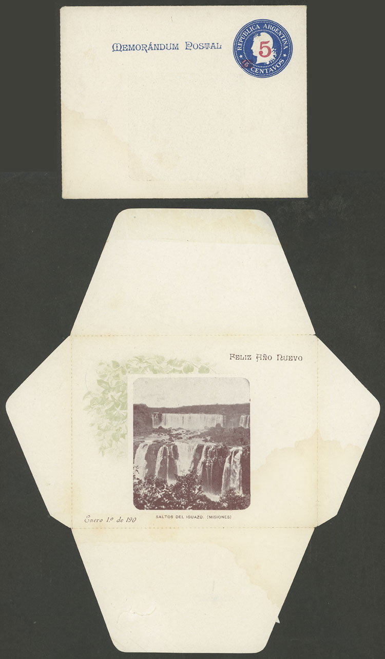 SZC-19P-32C, provisional memorandum postal 5c on 15c., with view inside of Iguazú falls, VF (Image)