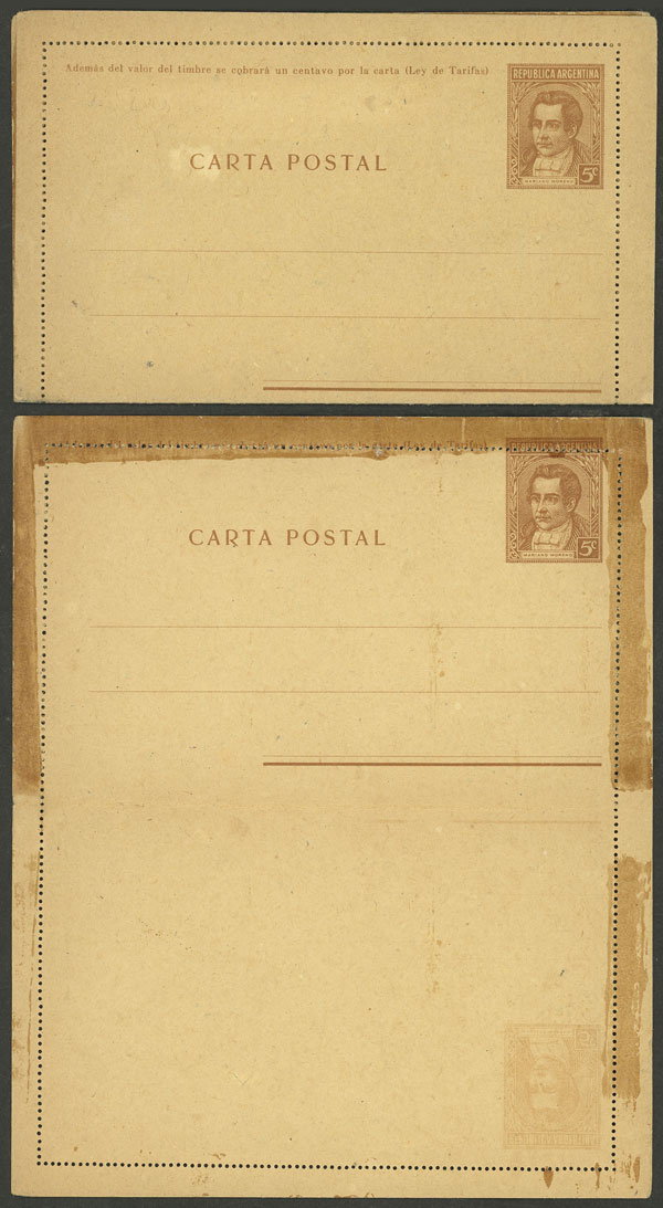 5c. lettercard, with variety: Double impression, one inside, with a light offset impression, scarce! (Image)