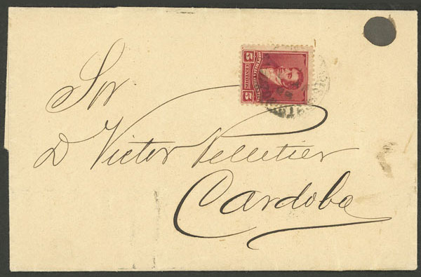 cover sent from Buenos Aires to Córdoba in AP/1896, franked with 5c. (GJ.194, perf 12¼), with arrival backstamp (Image)