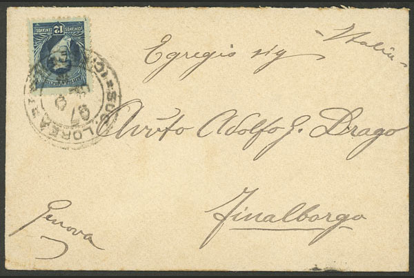 with postmark of "SUC. LOREA" sent to Italy on 8/JUL/1897, franked with 12c. (GJ.144), and arrival backstamp (Image)