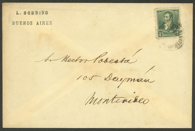 sent from Buenos Aires to Montevideo, franked with 2c. (GJ.176), nice rate of printed matter, VF (Image)