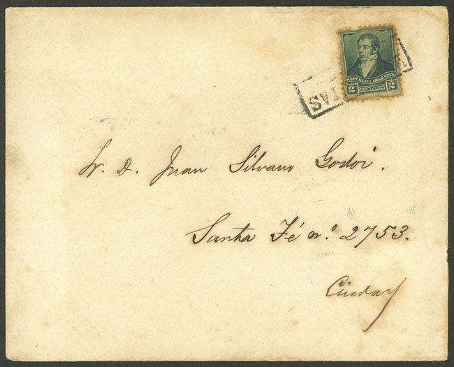 used in Buenos Aires in OC/1893 with rectangular "BUZONISTAS" cancel, franked with 2c. (GJ.139), several marks on back, nice rate of printed matter! (Image)