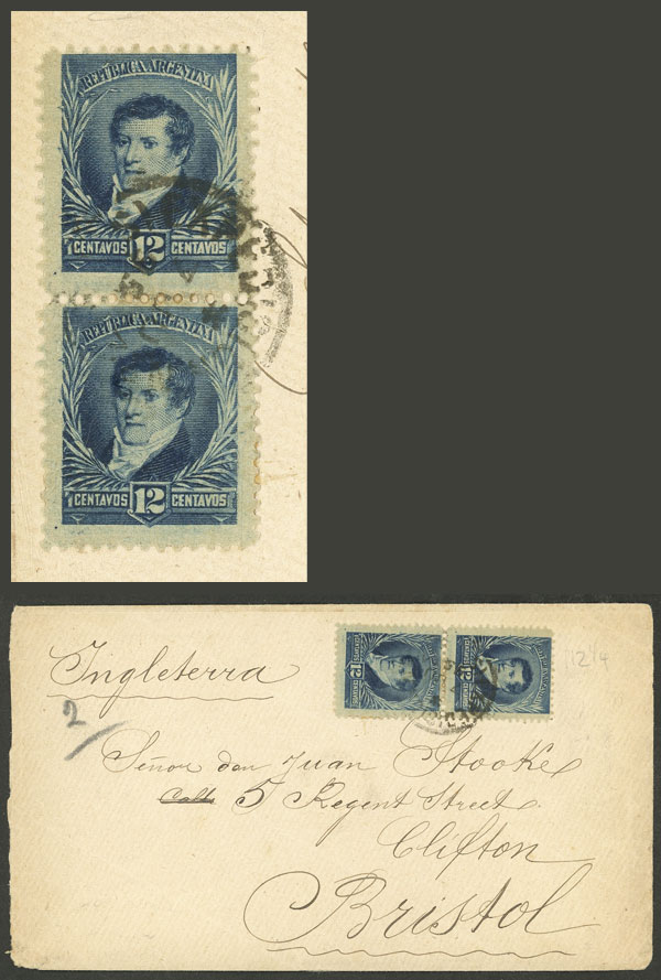 Cover sent from Buenos Aires to England in JUN/1895, franked with 24c. (GJ.158 in pair, perf 12¼), mark of Buenos Aires for 9/JUN/1895 on back