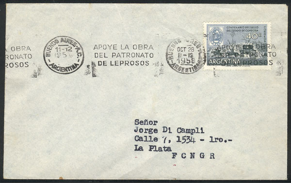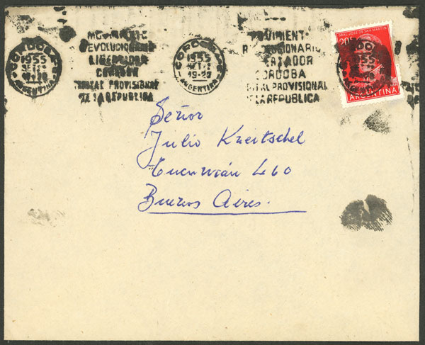 with slogan cancel "Movimiento Revolucionario Libertador - Córdoba - Capital Provisional de la República", sent from Córdoba to B.Aires on 21/JA/1955 (Image)