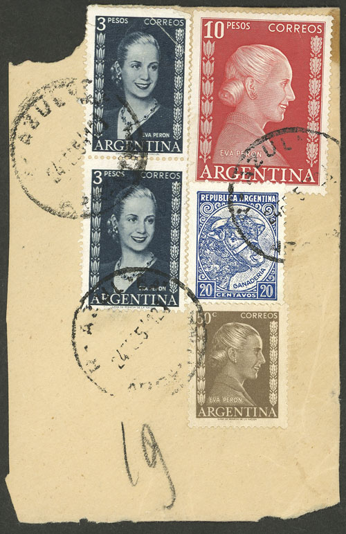 with postmark of AZUL of FE/1954, with important postage of $16.70 (including the $10 Eva Perón) (Image)