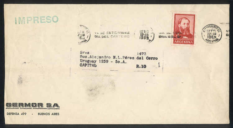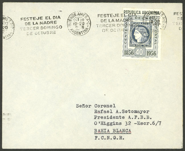 with slogan cancel "FESTEJE EL DÍA DE LA MADRE - TERCER DOMINGO DE OCTUBRE" (Image)