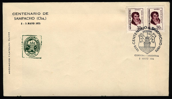 cachet and special postmark of the Centenary of Sampacho (Córdoba) 2/MAY/1975, VF! (Image)