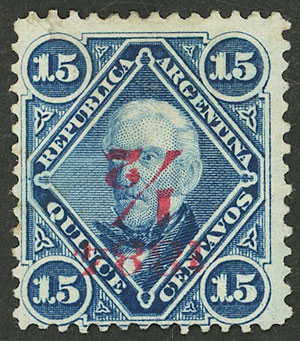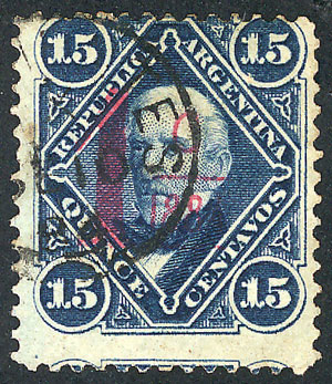 on 15c., groundwork of crossed lines, carmine overprint (Image)