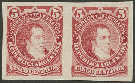 imperforate pair with sheet margin and printer imprint, VF (Image)