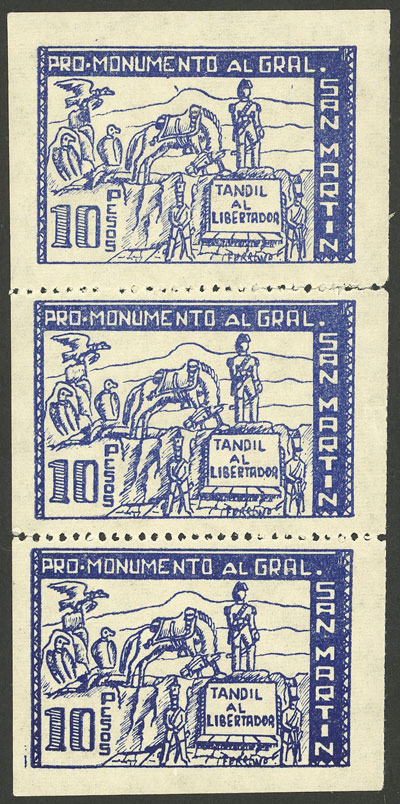 997   imageStrip of 3 cinderellas of $10, Monument to Gral San Martin in Tandil (Image)