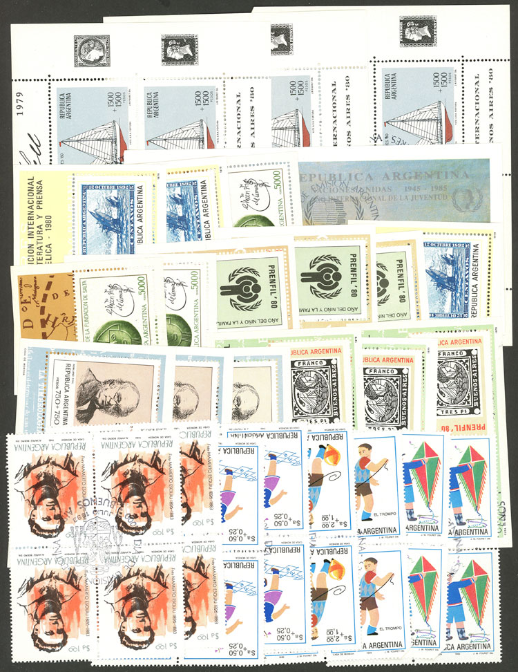 984   imageLot of approximately 350 blocks of 4 with first day pmk + almost 20 souvenir sheets mostly of 1980s, most of fine to VF quality, very high catalog value! (Image) (Image-02) (Image-03) (Image-04) (Image-05) (Image-06) (Image-07) (Image-08) (Image-09) (Image-10) (Image-11) (Image-12)