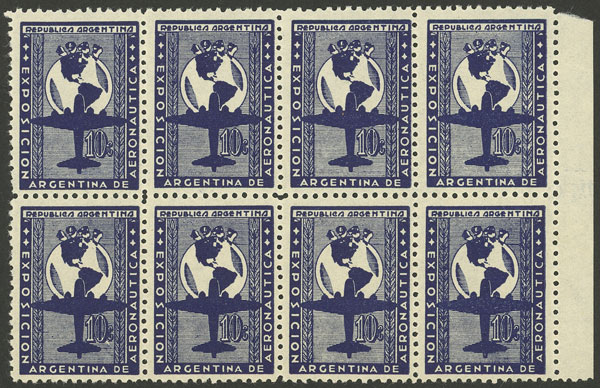 999   imageMarginal block of 8 cinderellas commemorating the Argentine Aeronautics Exhibition, VF (Image)