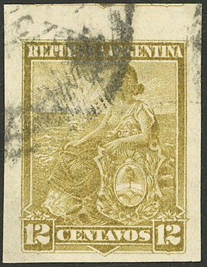 12c. olive green, imperforate, VF quality, rare! (Image)