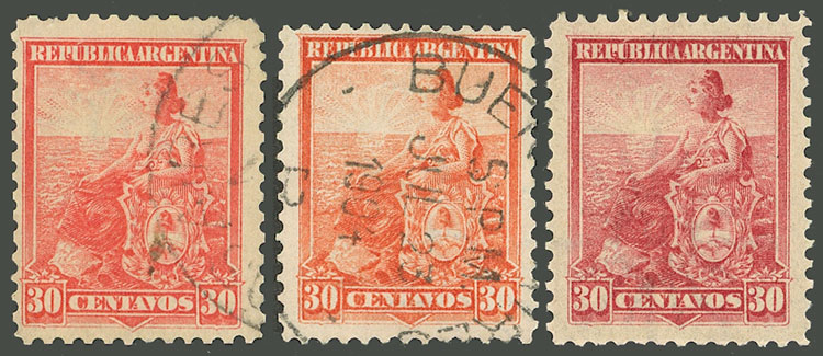 GJ.253/55, 30c., perf 12¼, in rose (hinged) + dull vermilion + bright red (Image)