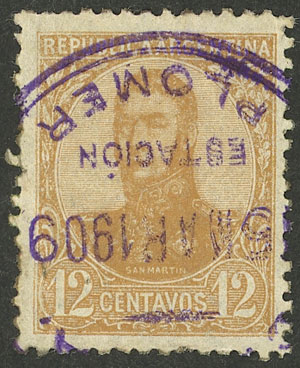 with violet postmark of "ESTACIÓN PLOMER" (Image)