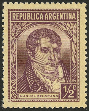 ½c. Belgrano, with variety PRINTED ON GUM, MNH (+30%), very fine quality! (Image)