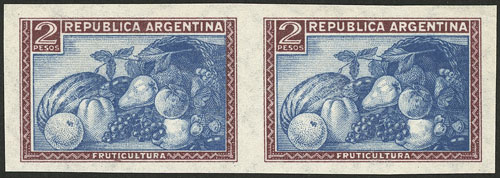 2P. Fruit, straight rays watermark, IMPERFORATE PAIR, MNH (+30%), excellent quality! (Image)