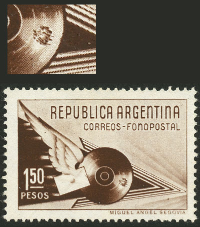 1939 1.50P. Fonopost, BROKEN RECORD variety (position 68), mint with minor hinge mark, excellent quality! (Image)