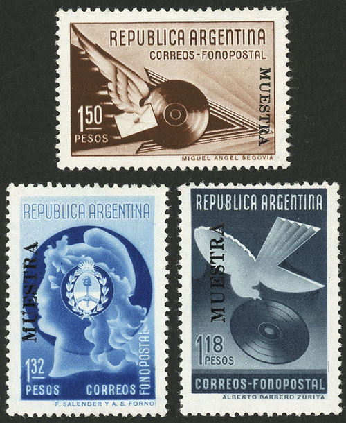 GJ.836/838, 1939 Fonopost, the set of 3 values with MUESTRA overprint, excellent quality, rare! (Image)