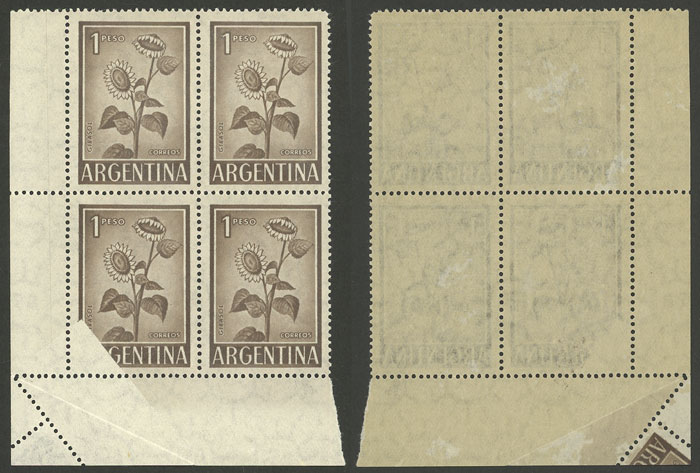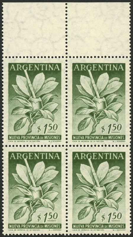 GJ.1070SG, 1956 1.50P. Province of Misiones (yerba mate), block of 4 PRINTED ON GUM, very fine quality! (Image)