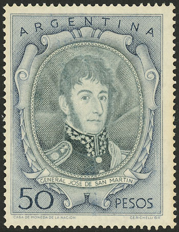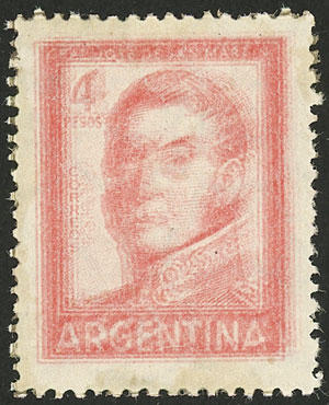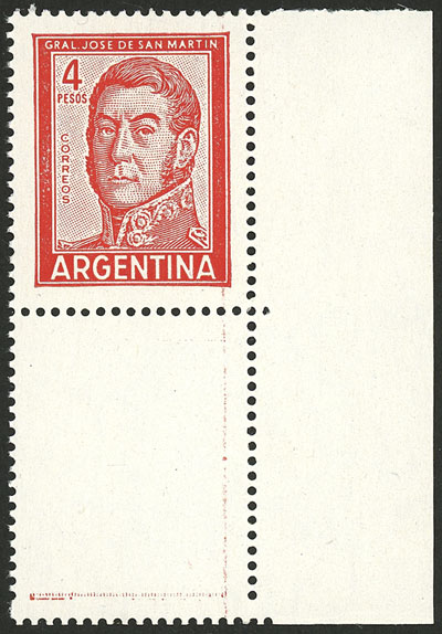 4P. San Martín with rare uncatalogued variety: TRIPLE IMPRESSION, very interesting! (Image)