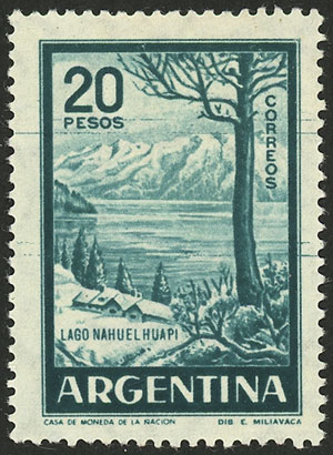 GJ.1145SG, 20P. Nahuel Huapi lake, PRINTED ON GUM variety, excellent! (Image)