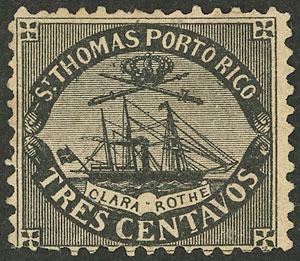 Attractive cinderella of 3c. showing the ship Clara Rothe, possibly fake or bogus, very nice! (Image)