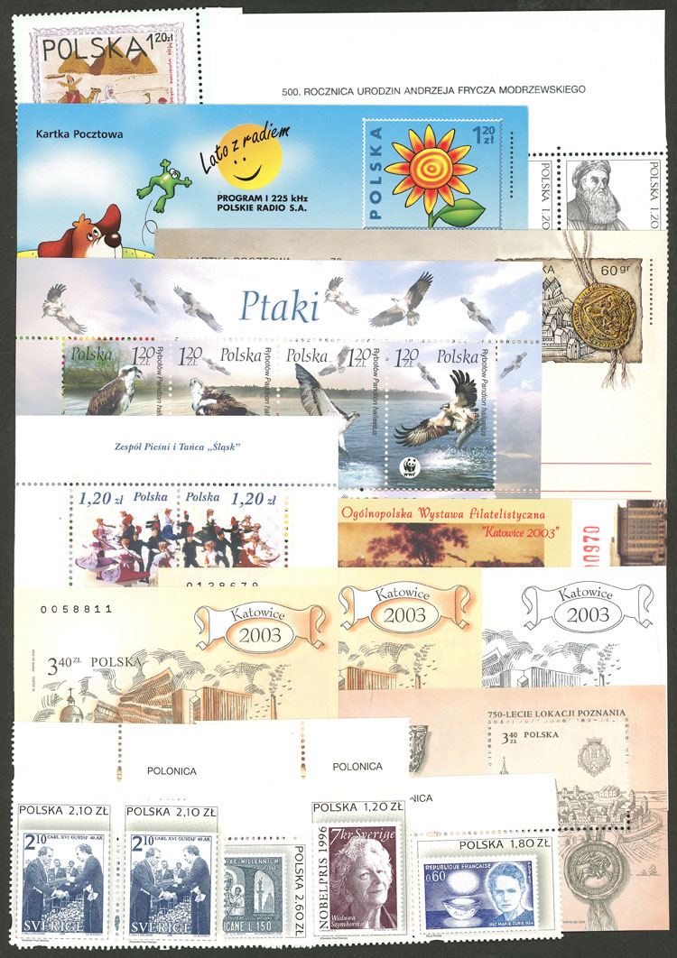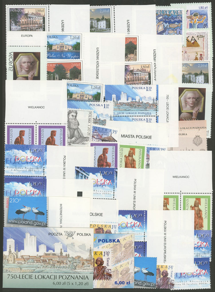 Year 2003: Very attractive lot with singles, pairs, strips, etc. of the issues of 2003, all MNH and of very fine quality, including some souvenir sheets, booklets and postal stationeries, high market value, good opportunity at low start!